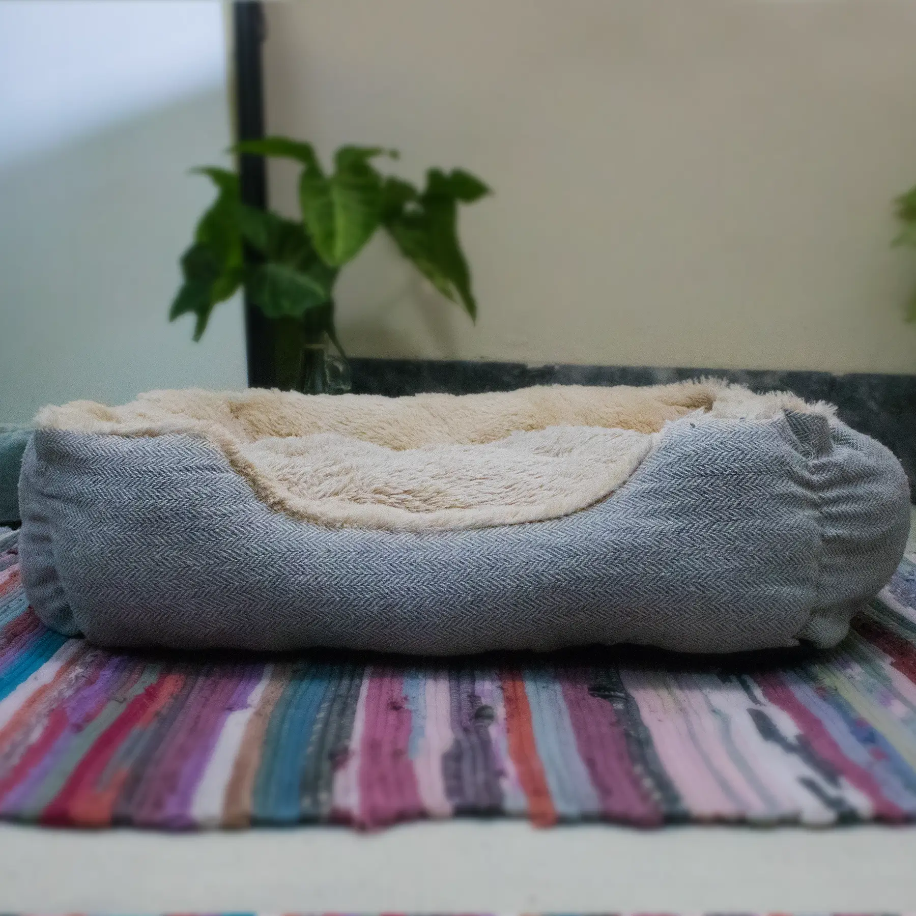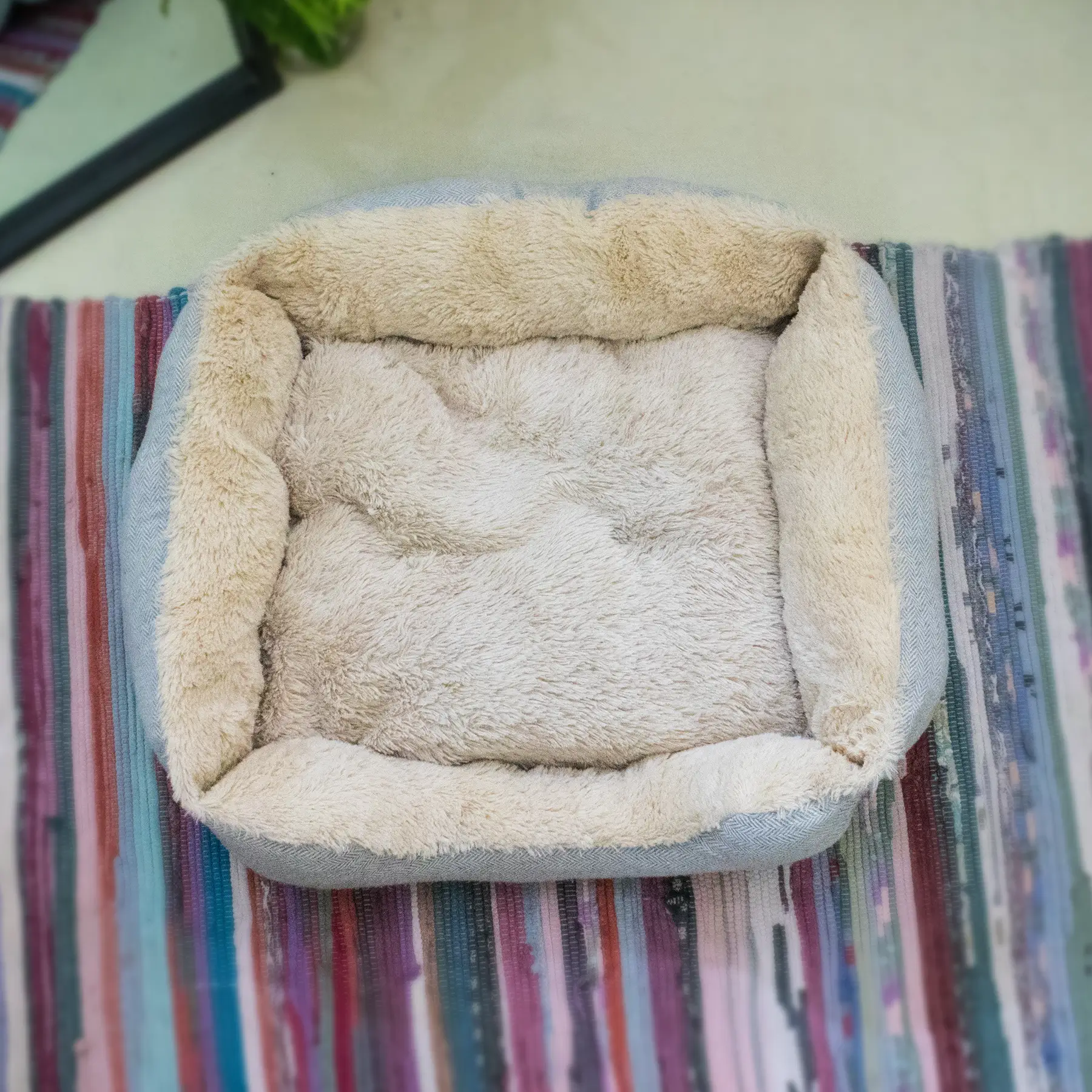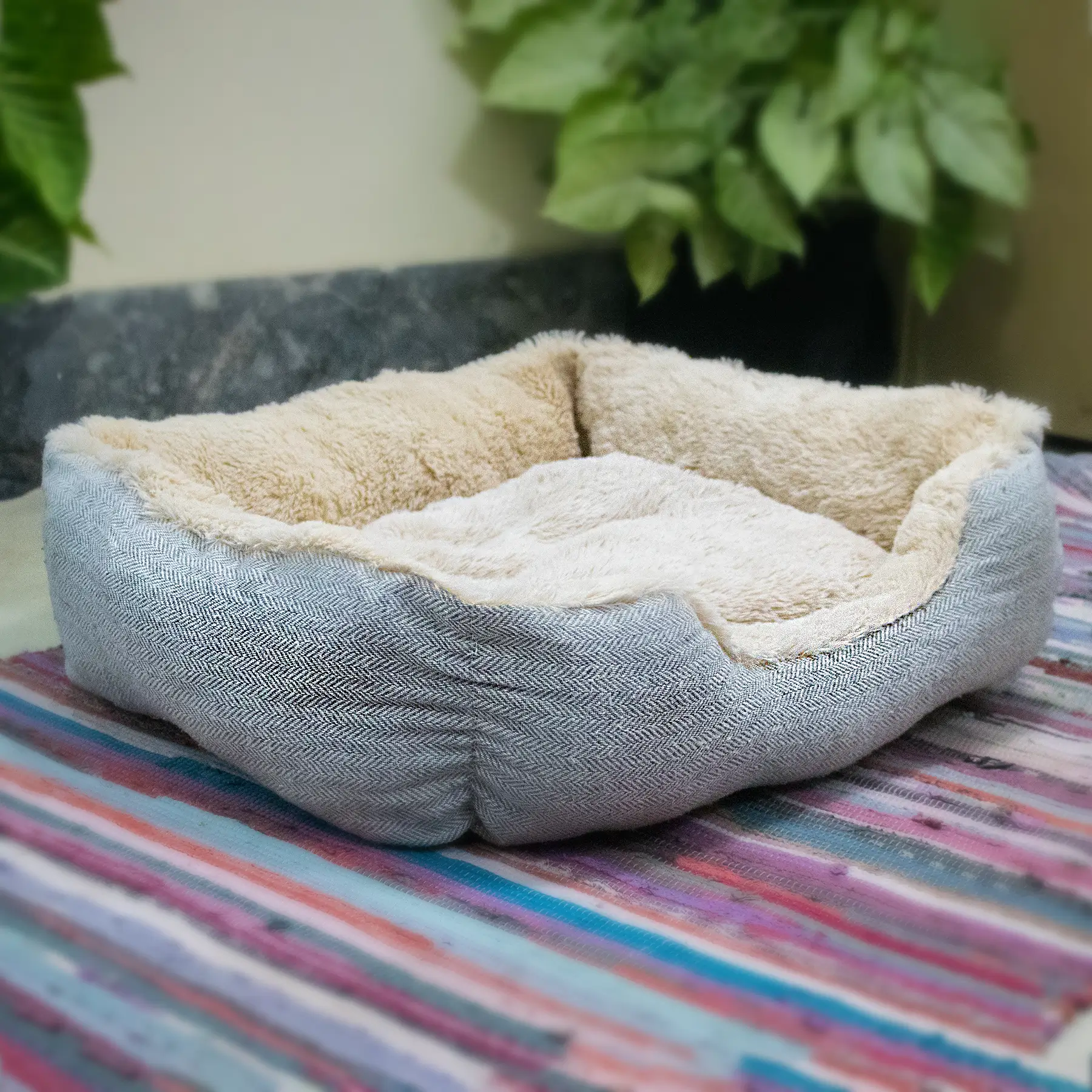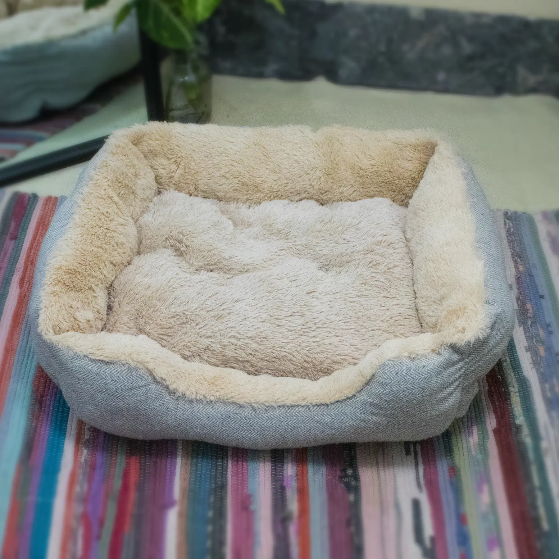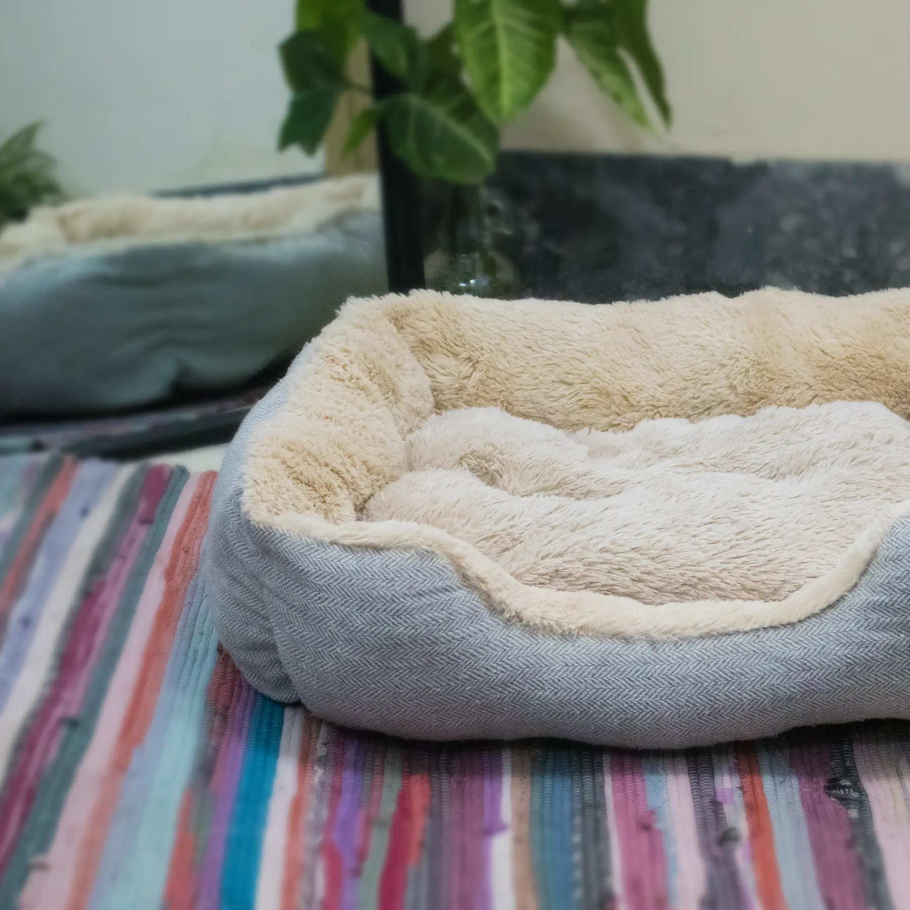 Light textured Fur Pet Bed with Removable Cushion & Anti-Slip Base