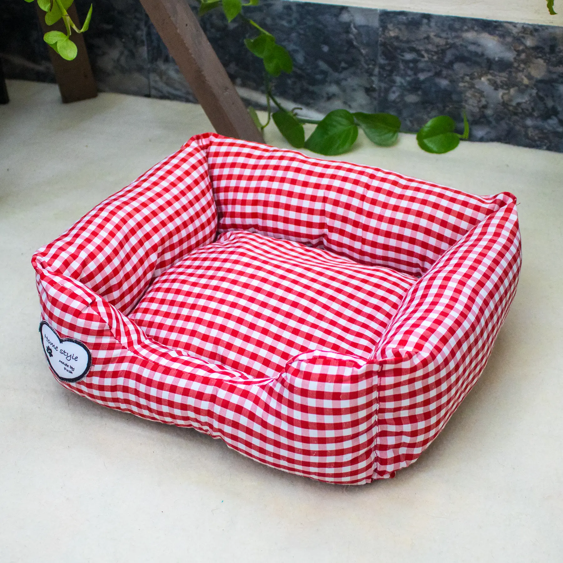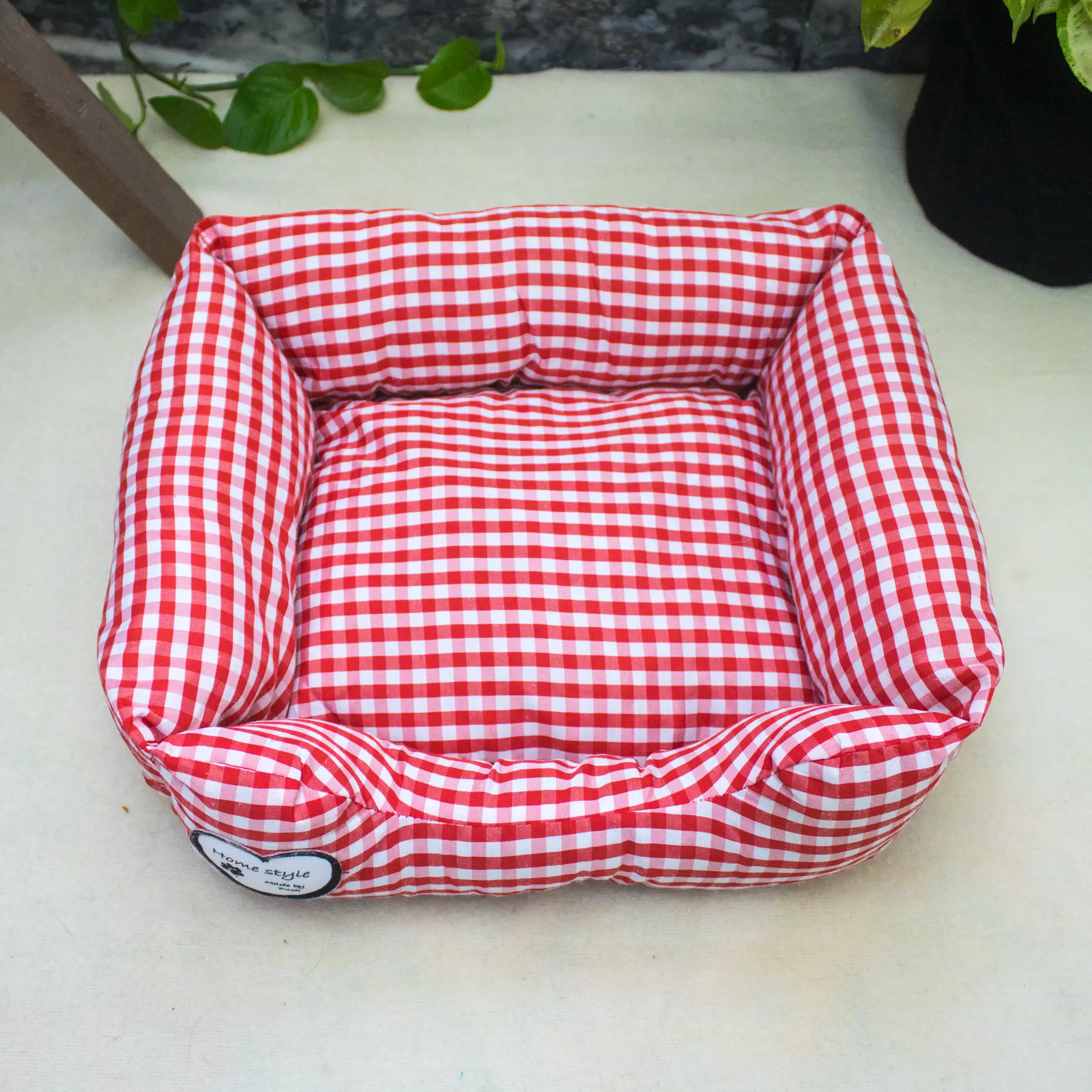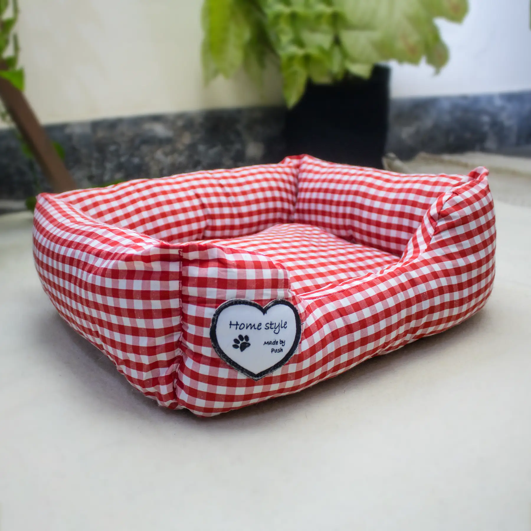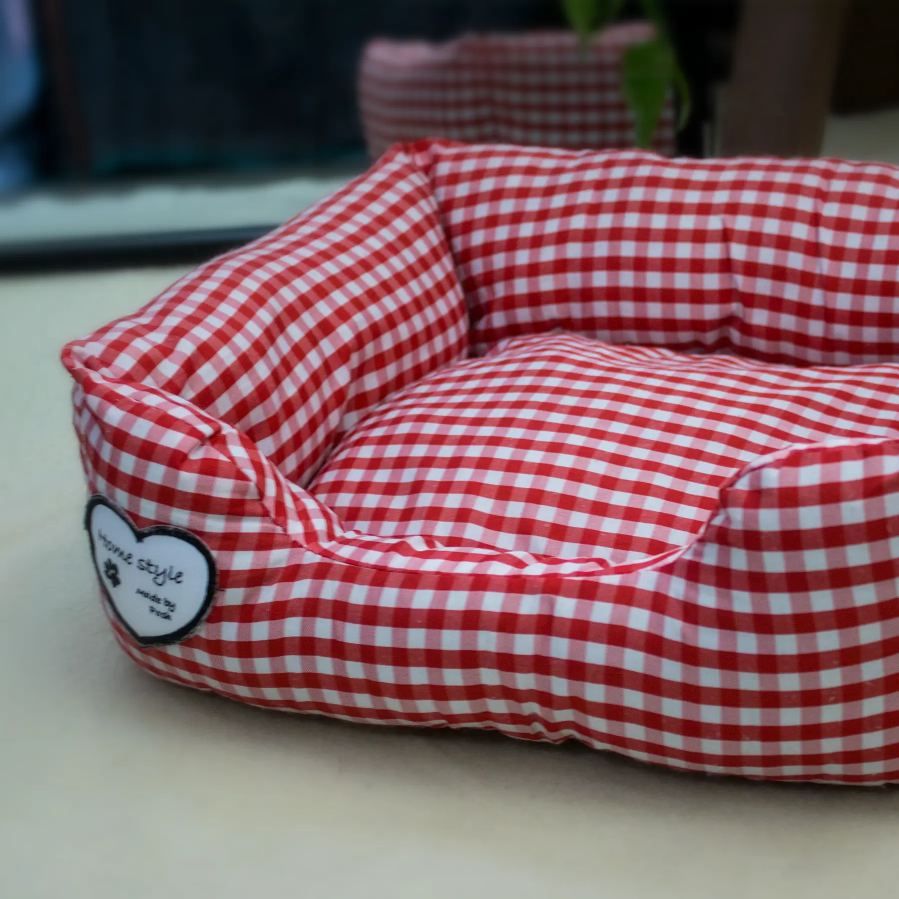 This small-sized pet bed is designed especially for puppies, kittens, and tiny pets who love a snug and secure resting space. The check-pattern exterior adds a simple yet charming look, making it a neat addition to any indoor setting. Made entirely with 100% polyester fabric, the bed feels soft to the touch while remaining durable enough for daily use. The polyester filling provides light cushioning that supports your pet comfortably during naps and rest time.