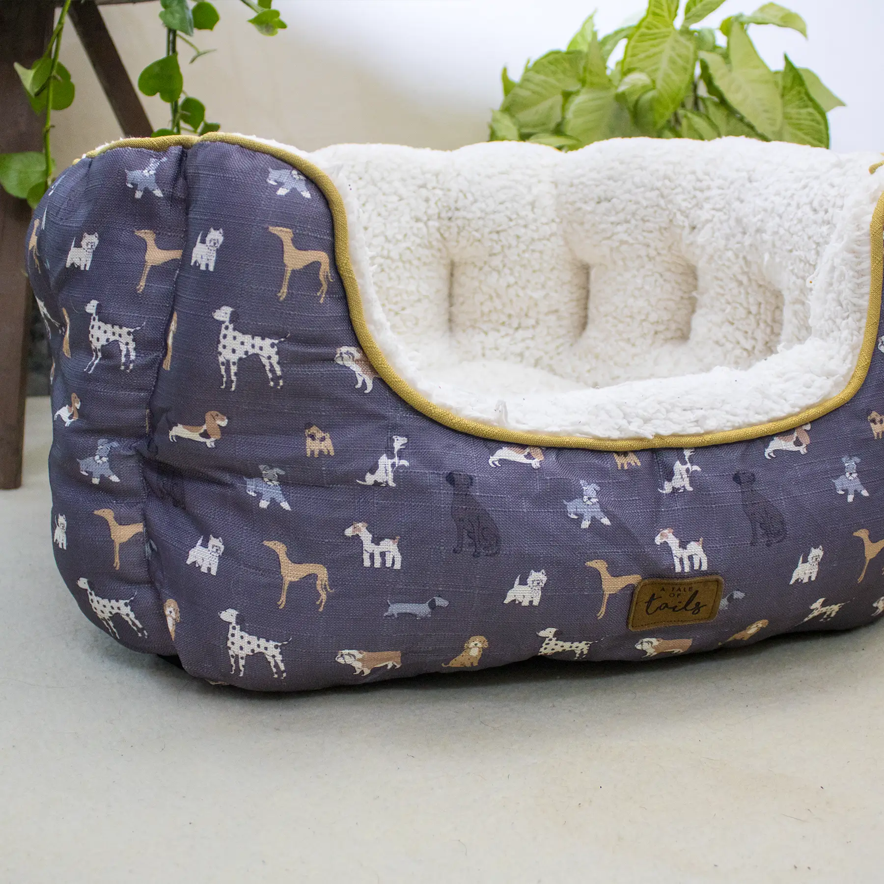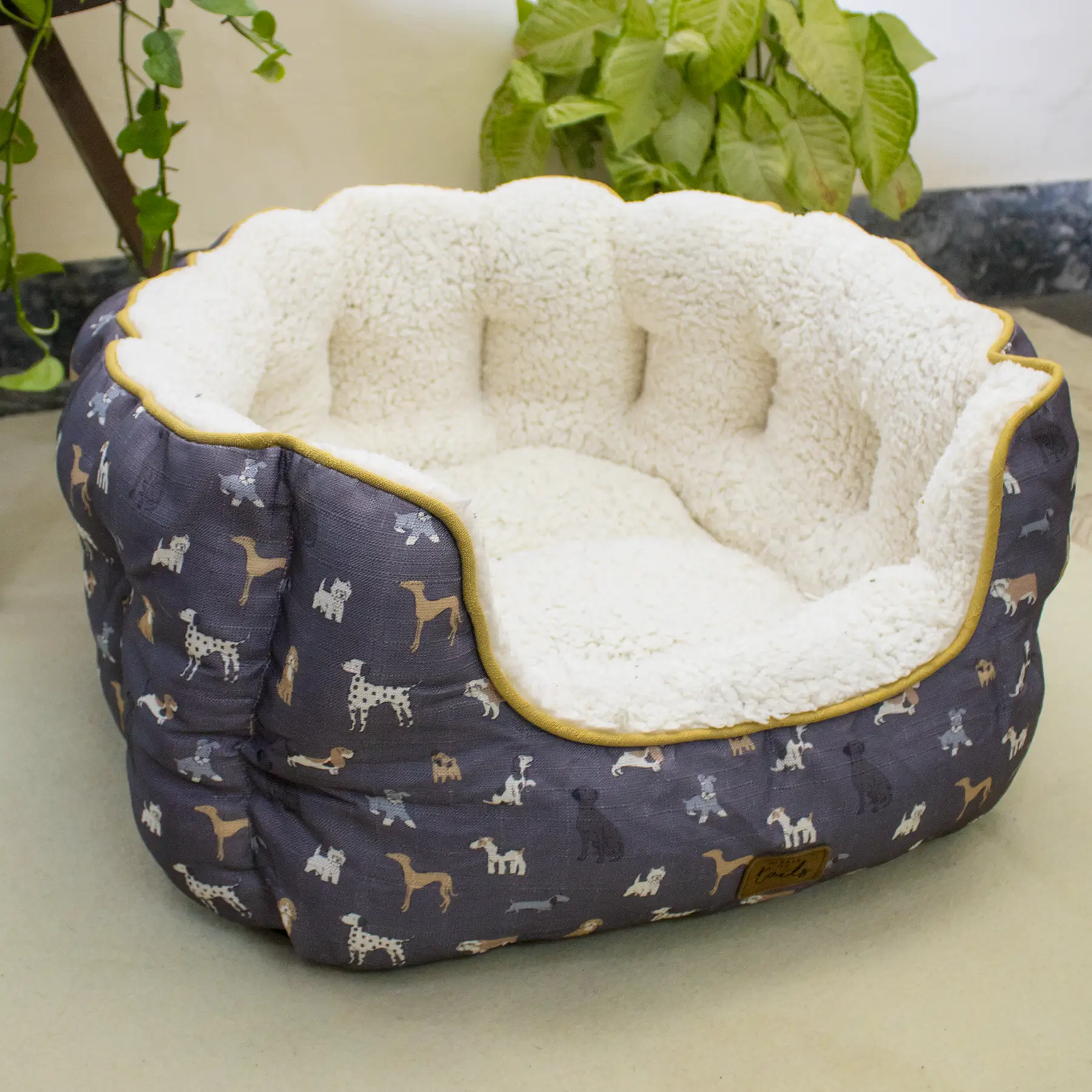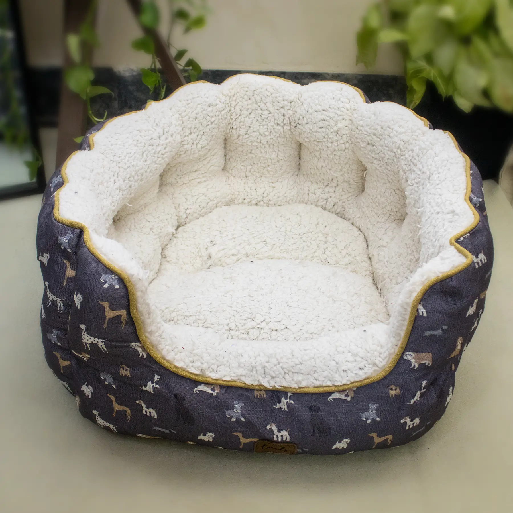 The exterior features a playful dog print design, adding a cheerful and pet-friendly touch to your home. Its spacious, round shape allows pets to curl, stretch, or nest comfortably while staying supported from all sides. Well-padded and sturdy, this bed offers both comfort and structure for everyday indoor use. Designed for pets who love to snuggle into soft surroundings, this bed is a perfect combination of warmth, security, and style.