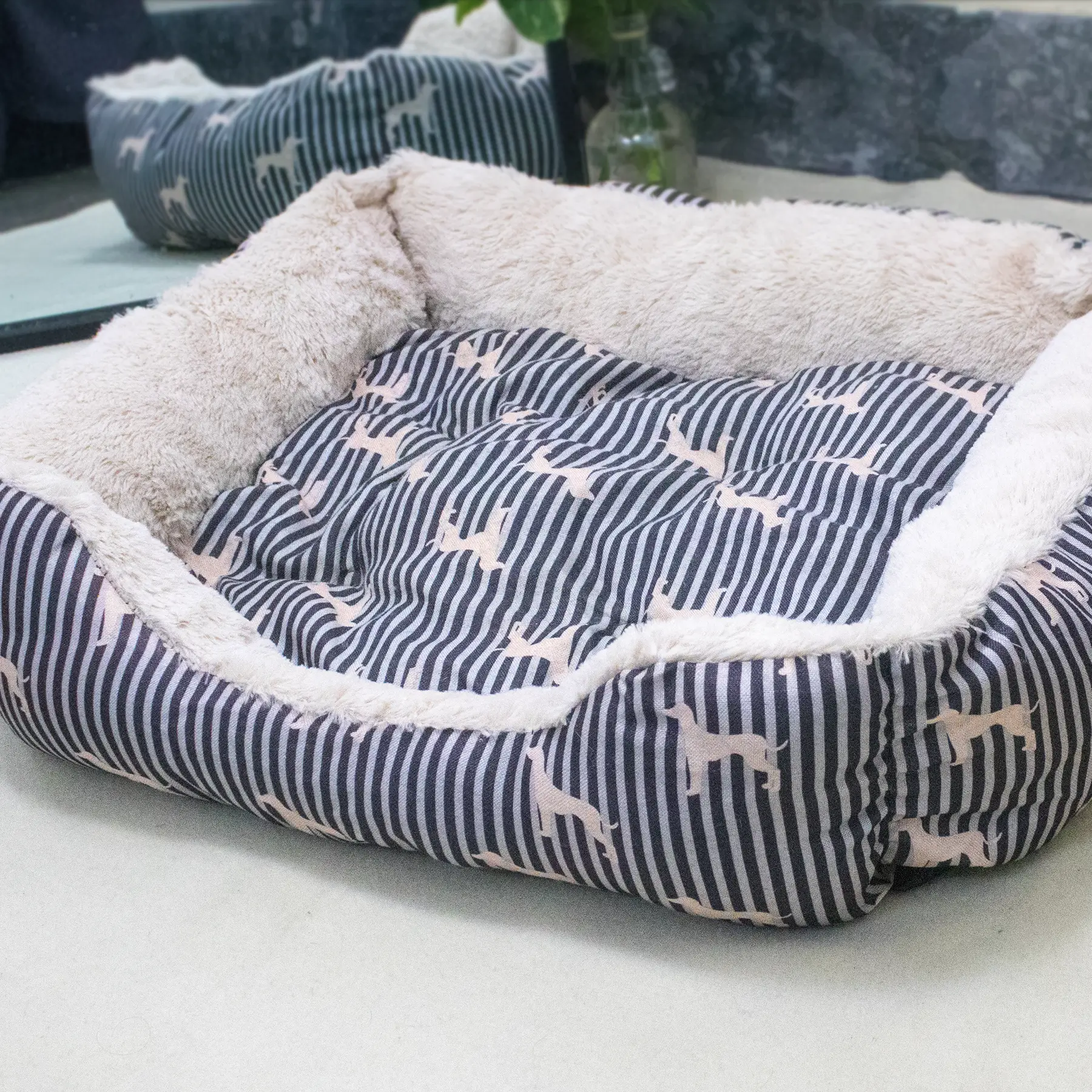 The bed features an anti-slip base, ensuring it stays firmly in place on tiled or wooden floors, even when your pet moves around. Finished with a playful dog print design, it adds a cheerful touch to your pet’s space while remaining practical for daily indoor use. Designed with comfort, stability, and convenience in mind, this pet bed is a reliable everyday resting solution that combines softness with functional design.