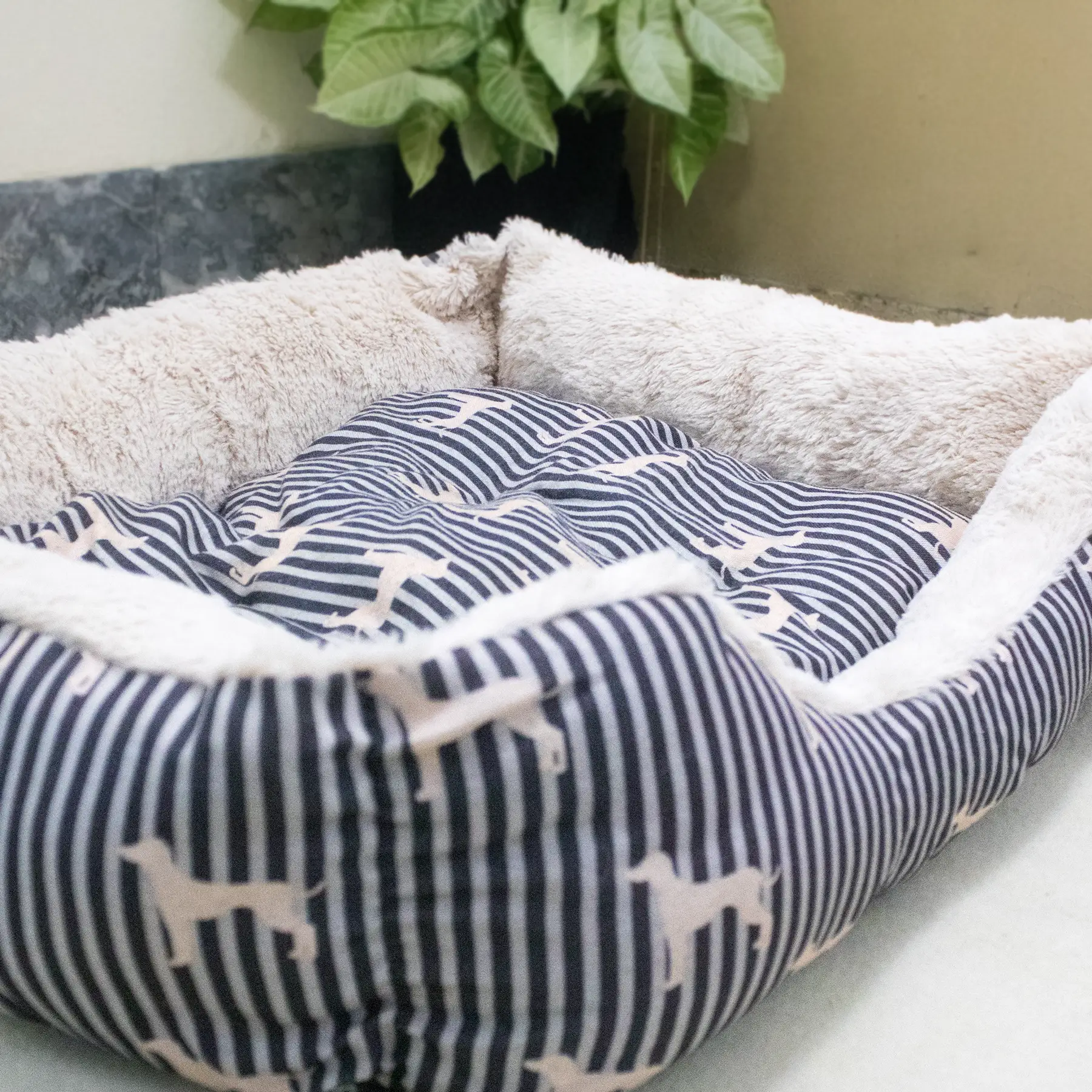 This comfortable pet bed is designed to give your dog a cozy and secure place to rest. The plush faux fur interior creates a soft, inviting surface that helps pets relax quickly, making it ideal for naps and nighttime sleep. Inside, the polyester-filled cushioning delivers gentle support while remaining lightweight and easy to handle. The double-sided removable cushion allows you to flip or remove it as needed, helping extend the bed’s usability and maintain cleanliness.